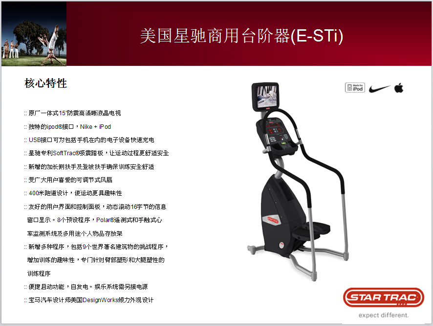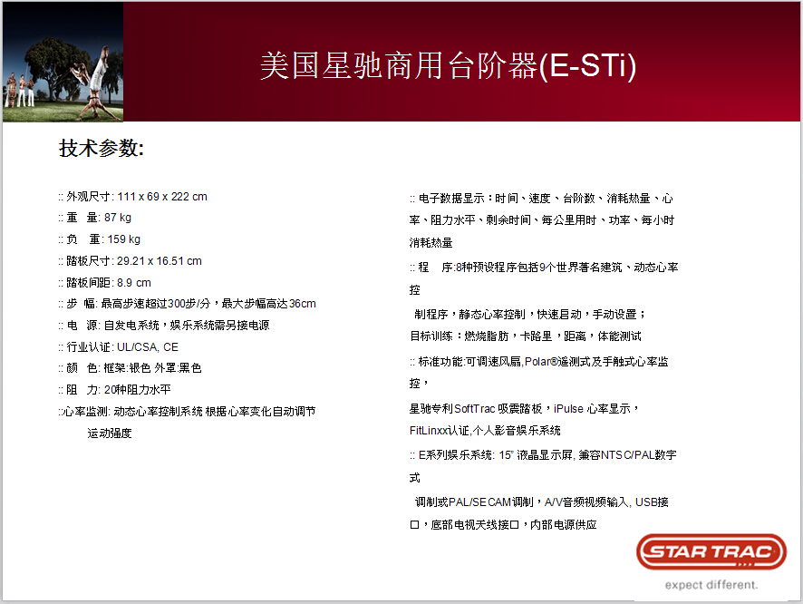 美國星馳(Star Trac)于1975年成立,是世界首屈一指的商用有氧健身設(shè)備研發(fā)和制造公司。公司工廠設(shè)于美國洛杉磯市。